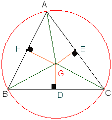 2-5:以外心G為圓心,以直線GA、GB或GC為半徑即可畫出外接圓