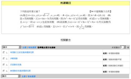 1.豐富題庫搭配搜尋引擎,可依範圍難度、題目類型與關鍵字搜尋。