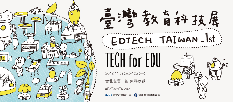 第一屆【臺灣教育科技展 EdTech Taiwan】11/28~12/03將於台北世貿一館舉辦,由台北市電腦公會、資訊月活動委員會主辦,中華民國電腦技能基金會、中華資訊與教育學會協辦,並訂定「為教育而科技」為展覽主軸,呈現科技能為教育帶來的幫助。