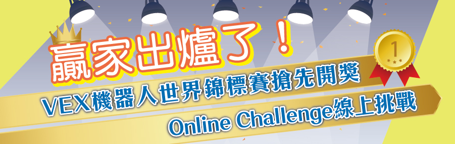 線上挑戰旨在讓賽隊與STEM之間的精采故事可以透過此平台展現,有別於VEX比賽的註冊方式,只需要一般帳號或Facebook、Google+帳號即可註冊並報名比賽,一般會搭配VEX賽季,9月開賽、次年2月公布入圍者、3月公布得獎者。今年線上挑戰主題有8種,分別由與VEX合作Girl Powered的Google以及Dell、Autodesk等公司進行推動,獎項有VEX世界賽資格名額、VEX世界賽-自動賽資格名額、VEX購物金等等,獎項非常豐富,吸引賽隊參與。
