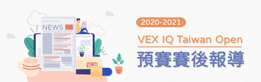 「2020-2021 VEX IQ Taiwan Open」預賽於2020年11月28日至29日在宜蘭縣宜蘭市中山國小順利完賽。本次預賽採用2020-2021賽季競賽主題「Rise Above」,賽事規則同步全球各賽區「VEX IQ Challenge」賽制。本次賽事共分為11月28日由學校隊伍參賽參賽的A組賽事與11月29日由學生自發性組成的隊伍、各縣市教育推廣中心、坊間機器人才藝班或家教班的隊伍參加的B組賽事。共有來自全國12縣市的55支隊伍報名參賽。通過11月28日至29日兩天共計百餘場的比賽後,選出2021年1月28日與1月29日的全國國手選拔賽的40支參賽隊伍: