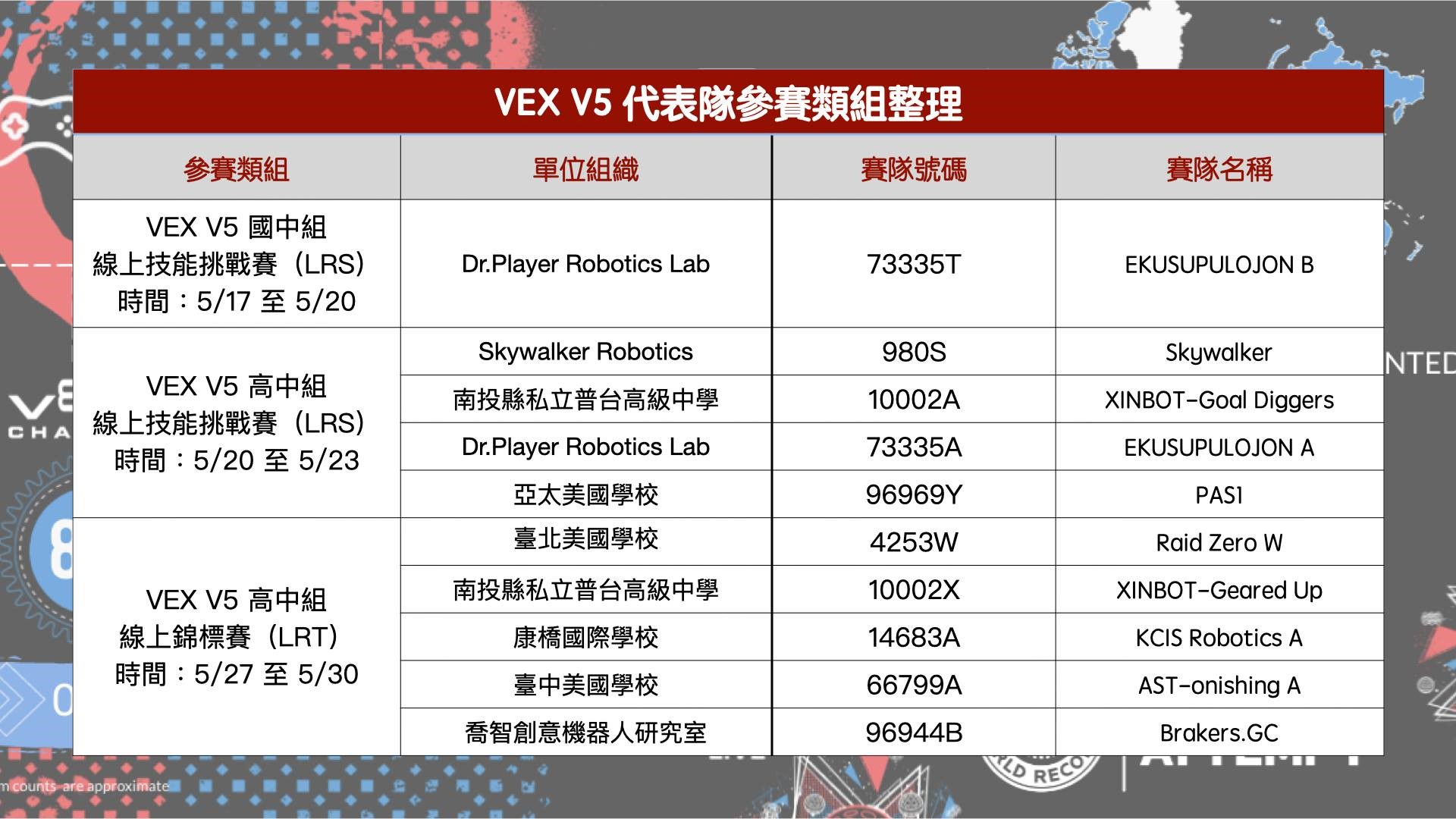自 2007 年開始,REC 基金會舉辦 VEX 機器人世界錦標賽至今已經超過十年,然而,在重擊全世界的新冠肺炎疫情影響之下,2019-2020 世界錦標賽很遺憾地被取消了。今年 REC 基金會克服重重阻礙,VEX 機器人世界錦標賽首次以線上遠端方式重新回歸世界舞台,在 5/17-5/29 為期兩週的賽事,邀請來自 30 個國家,1600 個團隊,總共超過 8,600 名學生參加終極機器人挑戰賽。此次錦標賽也嘗試突破金氏世界紀錄中最大的線上機器人賽事紀錄。