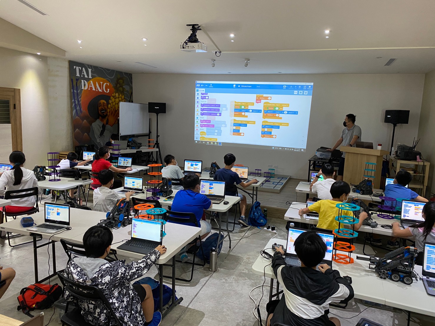 2019 年在邸台東-創生基地創辦人劉誥洋先生的邀約之下,開啟 HELLO MAKER 的台東之旅。有感城鄉差距教育議題始終存在,邸台東希望將更多新穎有趣的課程帶到台東,讓台東的孩子享有最新的教育資源。這美好的發想與 HELLO MAKER 的教育理念相當契合,因此在第一年合作時,僅短短兩週 HELLO MAKER 就完成所有商討並順利開班。今年暑假 VEX IQ 機器人營隊開辦正式進入第三個年頭,一開始,老師們的確感受到受限於經費資源等因素,六都以外的孩子們接觸機器人硬體設備的比率低了一些,於是投入更多心力及時間帶領學生習慣並理解機器人硬體結構、操作與手作。除了熟悉硬體部分,整體營隊核心環繞在程式設計、資訊能力、創意發想與學習態度的養成。搭配 VEX IQ 的競賽規劃,機器人課程不只有學習程式概念與設計,更強調人際的互助與合作。因此營隊中也引導孩子們主動地展現自我能力,並學著接納不同的意見溝通。