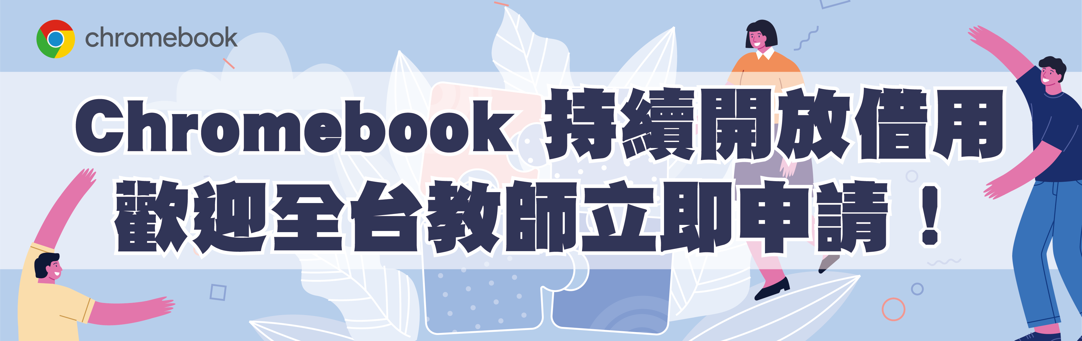 現在就來借用我們的 Chromebook 裝置吧!我們為全台教師準備了適合教師使用的商務機種、適合在教室移動間使用的最新款輕巧機種,皆可視需求轉換為帳篷模式、簡報模式或平板模式,並且具備軍規耐用度、長效電池續航力,歡迎填寫下方借用表單,一起來活化教學環境的載具!