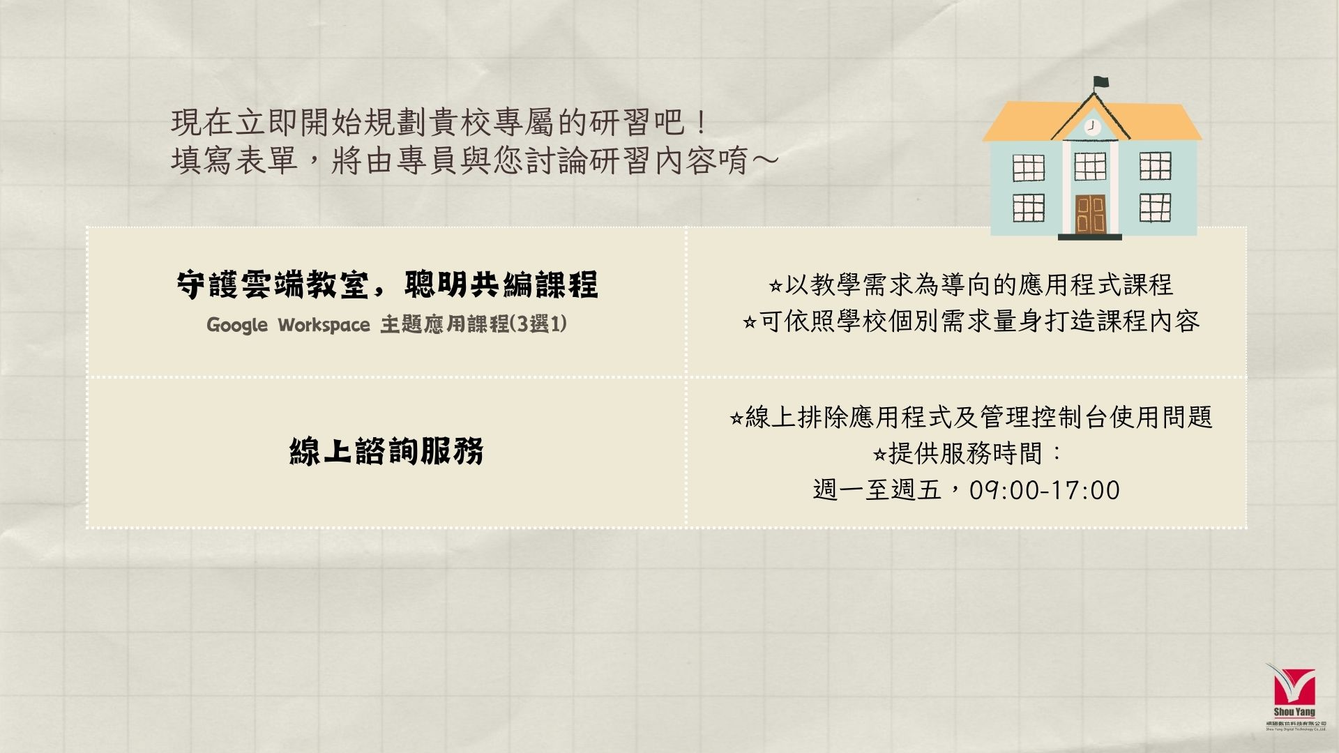 依照您的個人需求,安排適合貴校的研習與服務