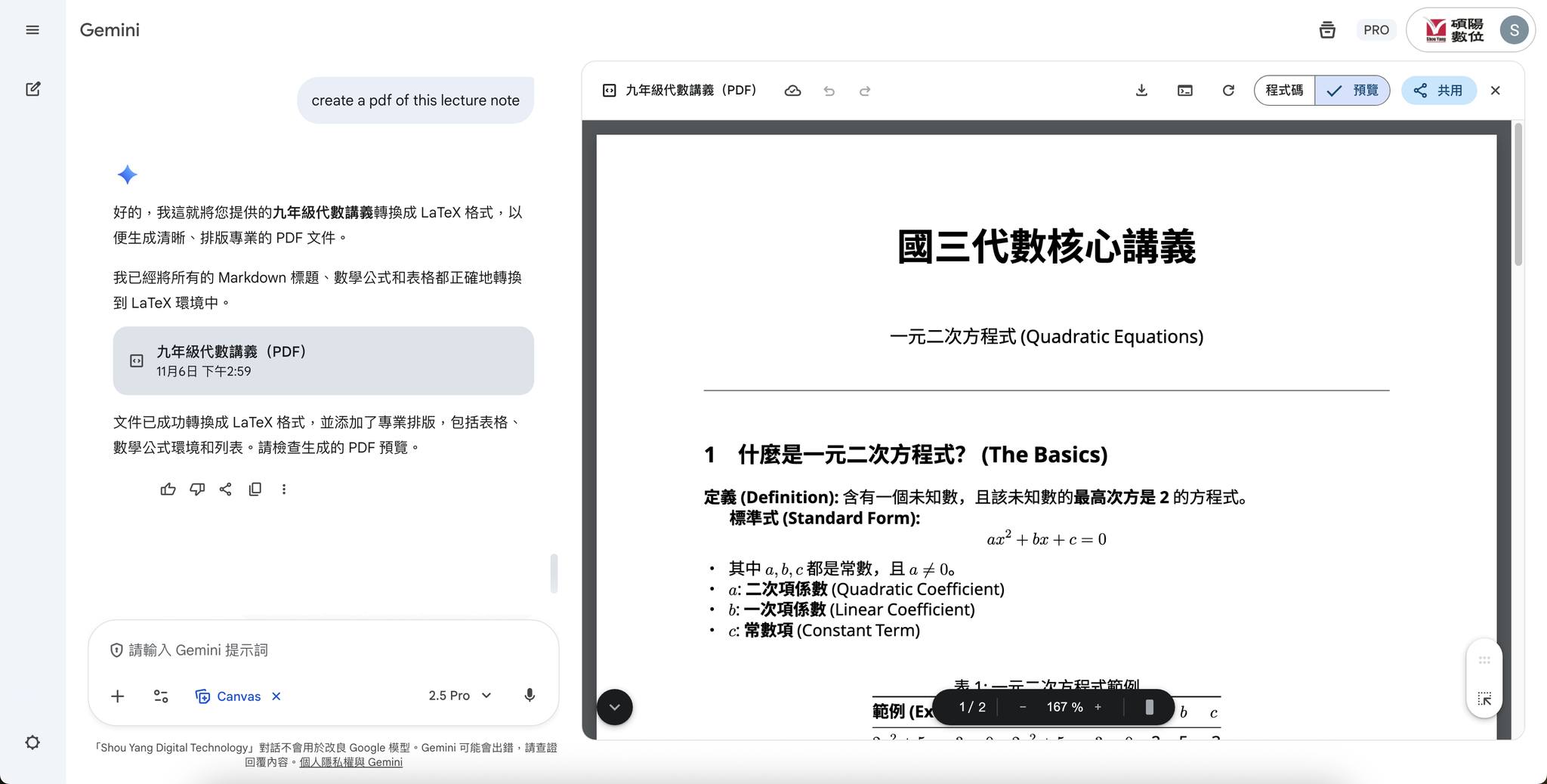 Gemini 網頁版可以製作簡報啦!步驟超簡單,只要進入 Gemini 網站開啟對話,點擊輸入框下方的工具選單,選擇「Canvas」,接著輸入指令請 Gemini 協助製作簡報就可以啦。