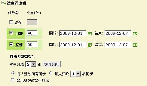 同時,系統也提供同儕互評及自評功能,協助老師確定評量方式前,可以先讓學生們測試使用。