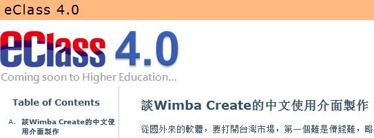 最後,在完成Wimba Help的中文化後,我們會正式釋出Wimba Create 2.5.1版中文化介面。至於版面樣貌(Scheme)是屬於客製項目,這部份我們將列於進階的教育訓練課程,讓Wimba Create使用單位也能夠自行設計有自己單位風格的版面樣貌。